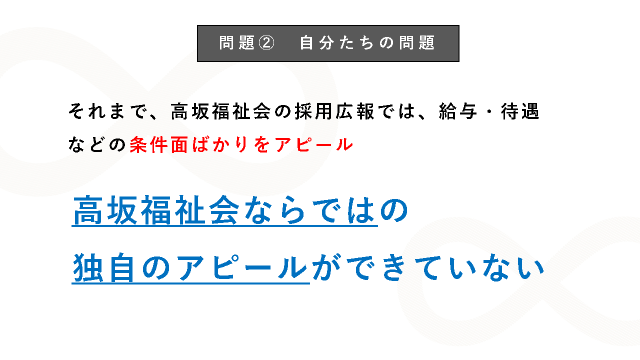 「~やれること∞むげんだい~ 採用数4倍増!介護業界の深刻な人手不足を救った採用ブランディング」は、愛知県内に4拠点の施設を展開し一気通貫で介護サービスを提供している社会福祉法人 高坂福祉会の採用ブランディング事例です。同法人では、介護業界における深刻な人手不足の影響により、人材の確保が困難に。その状況を打破するために採用ブランディングに着手しました。