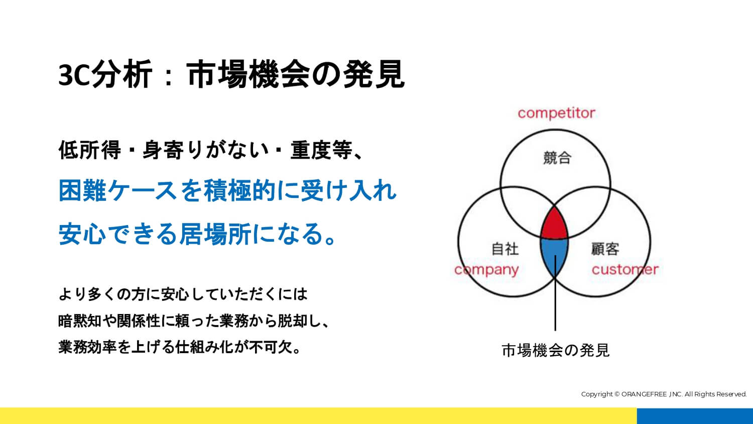 第1期のインターナルブランディングは2014年。翌年に3施設の同時開設を控え、創業幹部の価値観を言語化し、組織としての判断軸を明確にすることが急務となっていました。創業幹部が取り組んだブランディングで炙り出されたのが、「とことん」という根源的な価値観です。困難な案件にも妥協せず向き合い、「それは本当にご利用者様のためになっているのか」「まだできることはないのか」と問い続ける姿勢こそが、同社の競争優位の源泉でした。