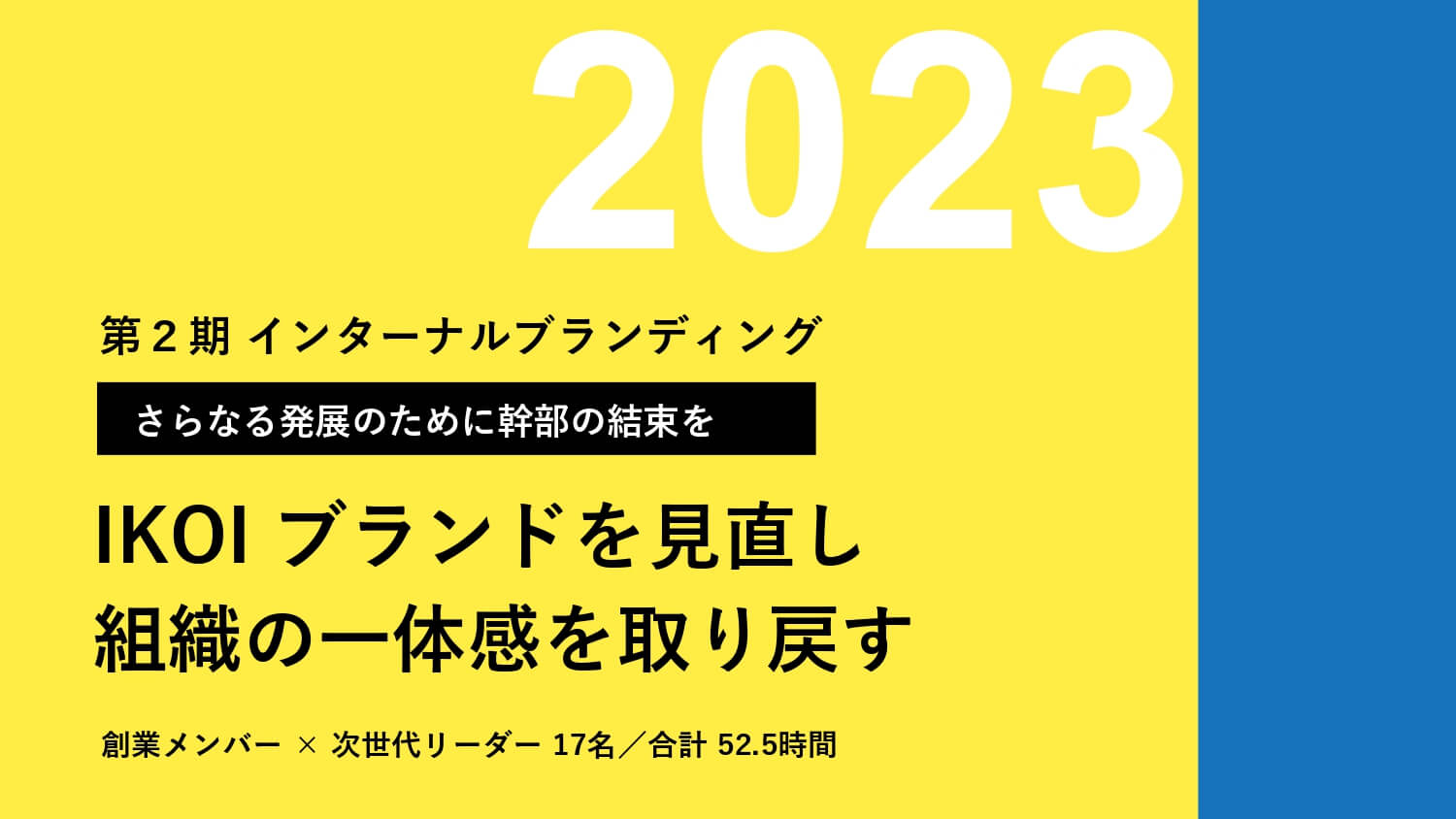 「根源価値は揺るがない──「とことん」が世代を繋ぐインターナルブランディング」は、医療福祉の総合支援企業であるIKOI GROUPにおいて、足掛け12年にわたり3期に分けて実施したインターナルブランディングの取り組みです。その成功の要因は、事業成長の節目ごとに表面化する課題に対して、ブランディングの専門家を起用し解決してきた点にあります。