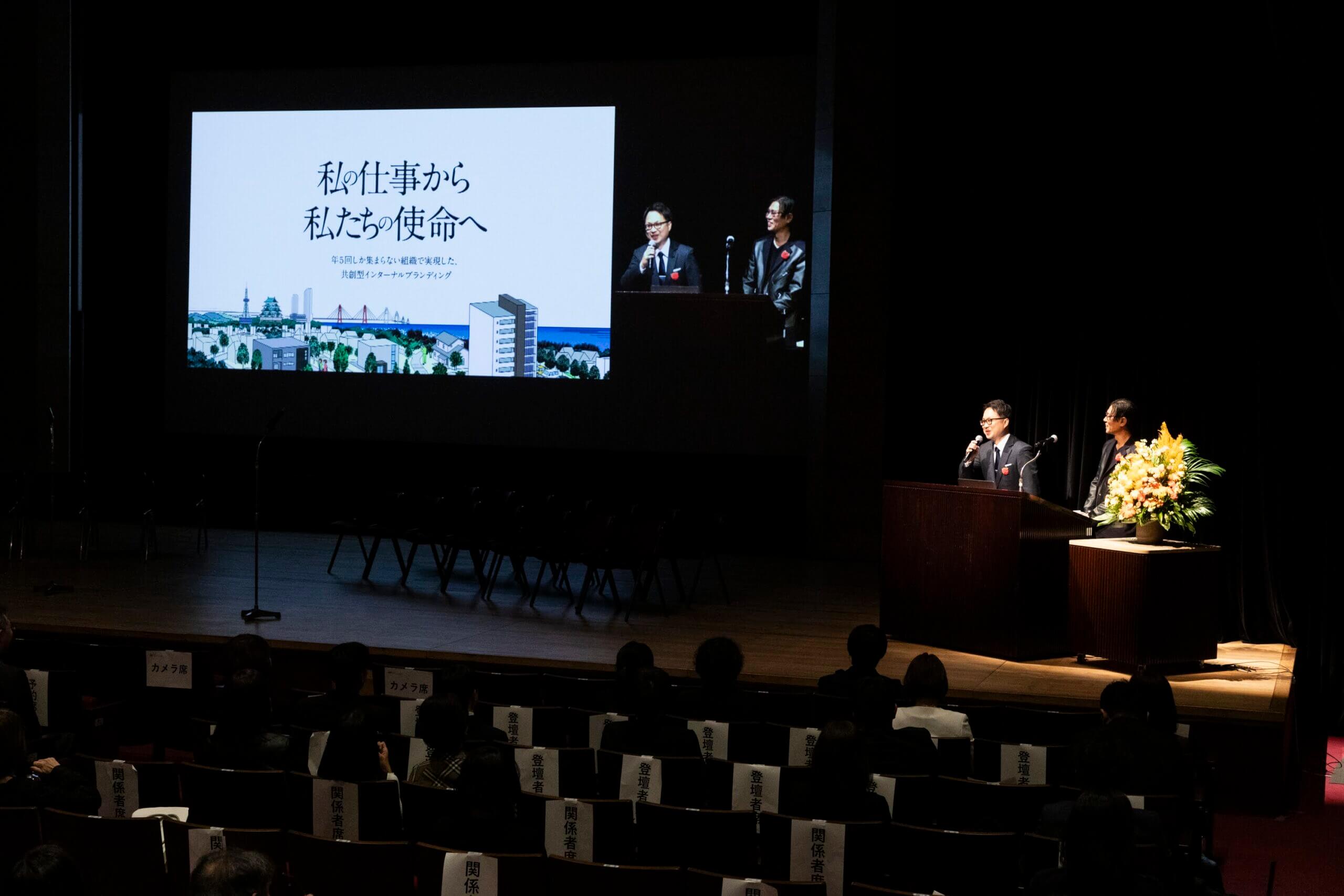 「私の仕事から私たちの使命へ ~年5回しか集まらない組織で実現した、共創型インターナルブランディング」は、創業87年の総合建設企業が「価値観の明文化と共有」を目的にインターナルブランディングに取り組んだ事例です。東海エリアの地域密着企業である石黒建設は、個人主義が根付いた企業風土が特徴であり、さらに全社員が集まるのは年に5回のみで価値観を共有する機会が少ない状況にもありました。そんな中、社長交代をきっかけに「より一層、地域に貢献できる会社にしたい」「それを全社一丸となって全員で取り組んでいきたい」という新社長の思いを実現するために「価値観の明文化と共有」に着手。全社員を巻き込んだ共創型の理念策定とインターナルブランディングに取り組みました。
