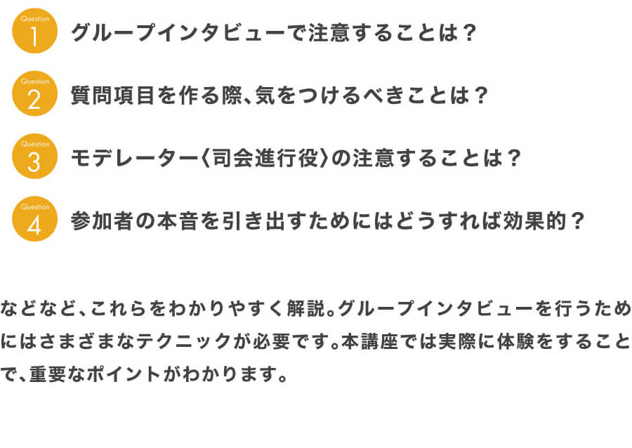 事前レクチャー、まとめ講義なども含む4時間半!あなたのそのブランディングは正しいのか!?その答えは、グループインタビューで掴み取りましょう!
