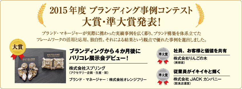- ●「ブランディング事例コンテスト」大賞、準大賞受賞者発表
