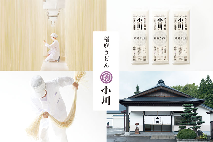 「小川」の縦線を麺に解釈したロゴ開発、“手延べ”の価値を“TENOBE