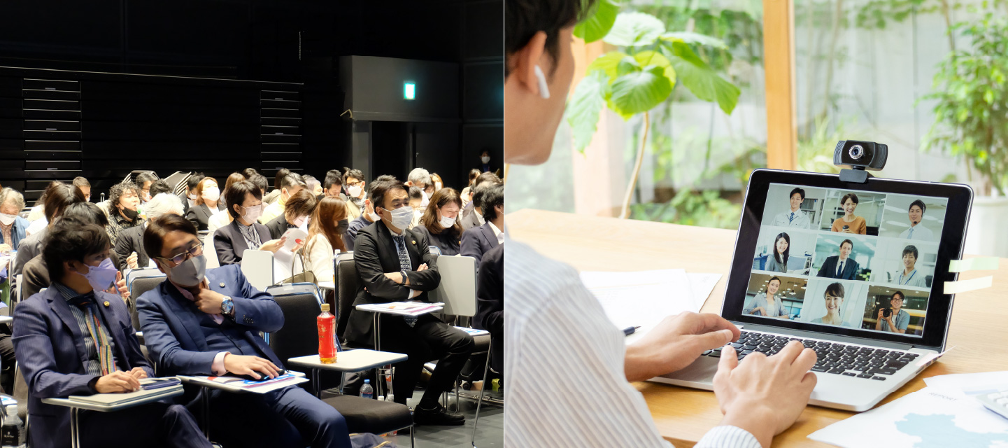 会場(有楽町朝日ホール)参加とオンライン(ライブ配信)の2通りの方法でご参加いただけます。今年度より席数に余裕をもっていますので、皆さま是非会場でのご参加をお願いいたします。当日会場のみで配布される資料や催しも企画しています。